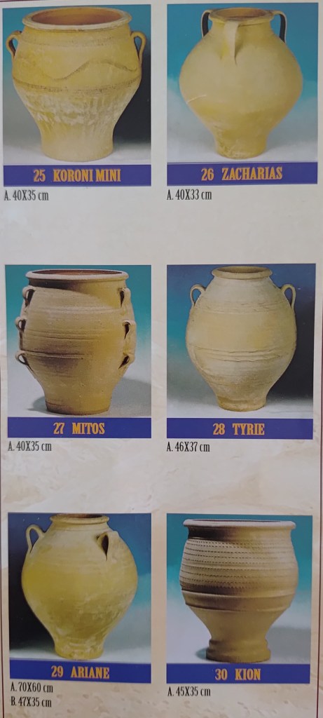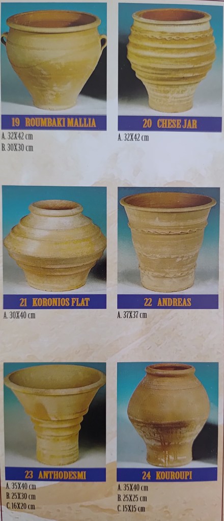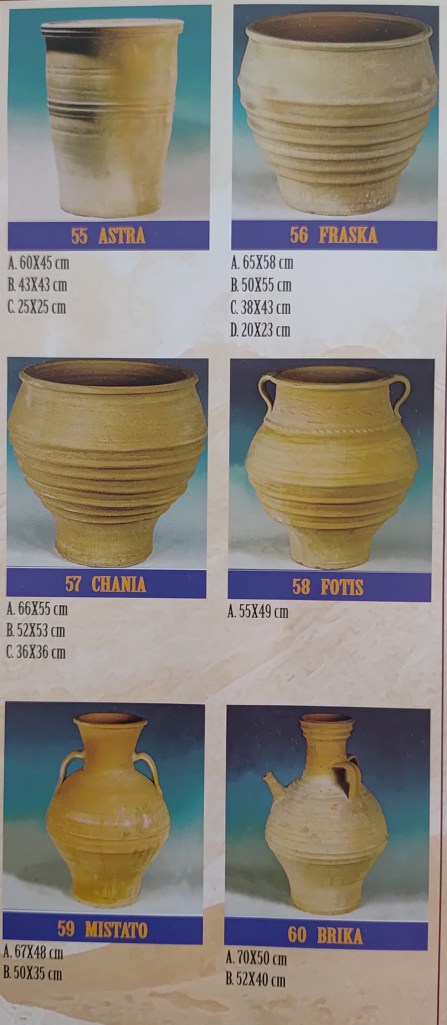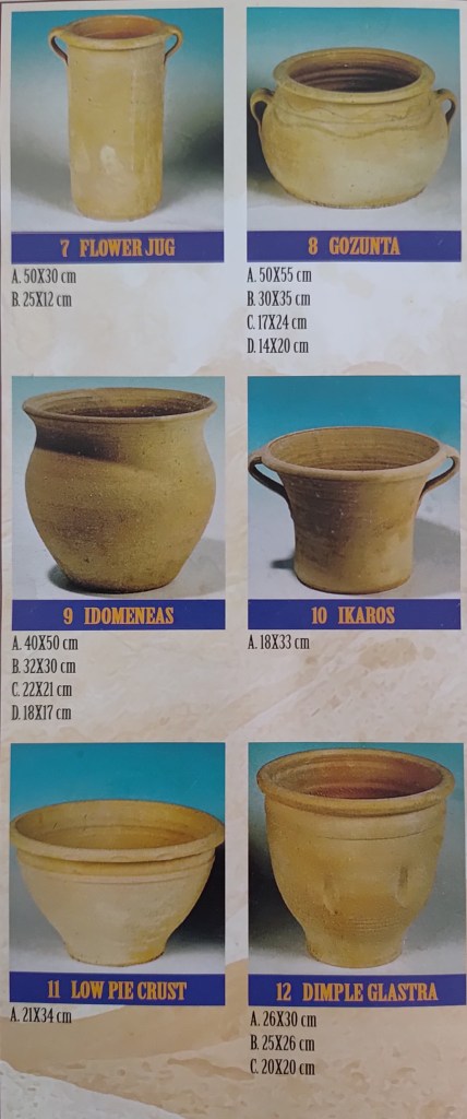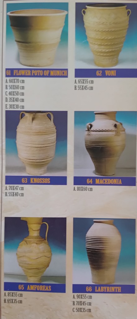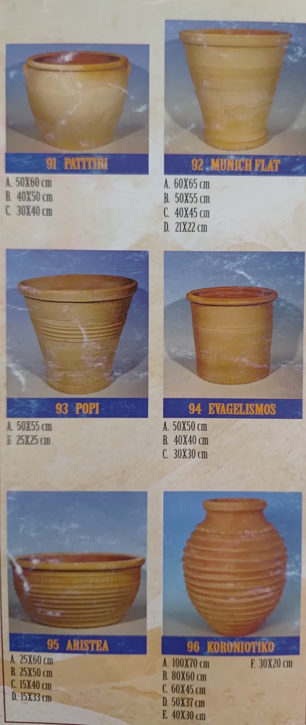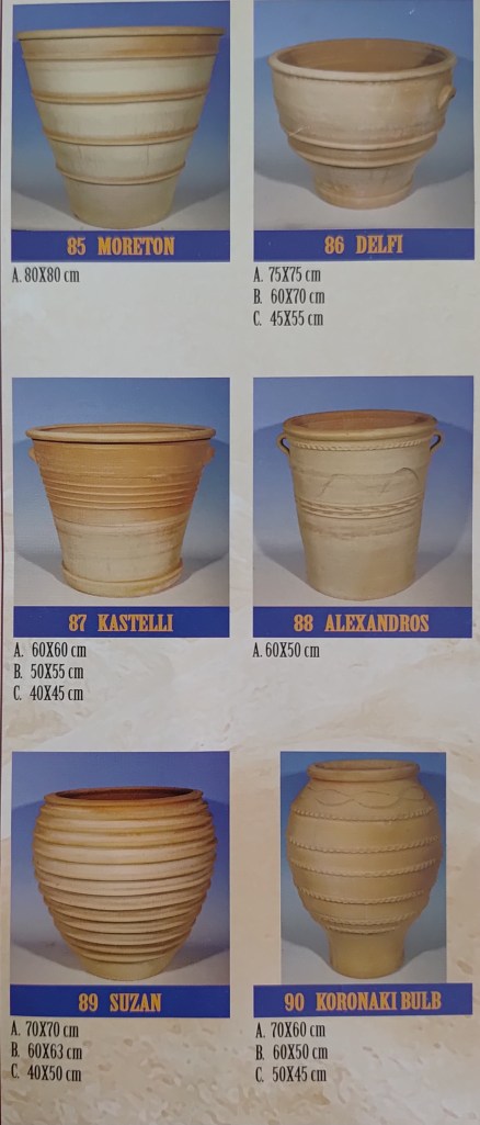 The shop has 100 different designs with 230 different sizes. All pots are chosen by Yiannis. Our huge advantage is, that we offer the best prices available and also the best Logistics without compromizing Quality. Here you can have a quick look in all of our models. For details of the pots (dimensions) , please contact Yiannis and he’ll happily discuss details and send you the full brochure or check our catalogue here.